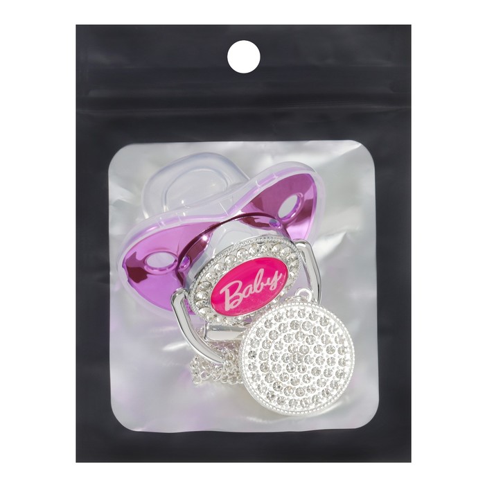 Соска - пустышка силиконовая ортодонтическая M&B «BABY», от 6 мес., с колпачком, держатель - цепочка, цвет розовый/серебро, стразы