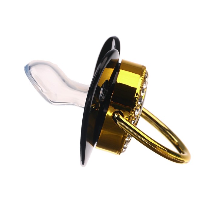 Соска - пустышка силиконовая ортодонтическая M&B «BOSS», от 6 мес., с колпачком, держатель - цепочка, черный/золото, стразы — Характеристики