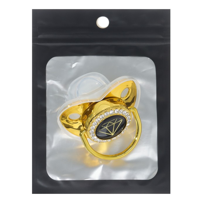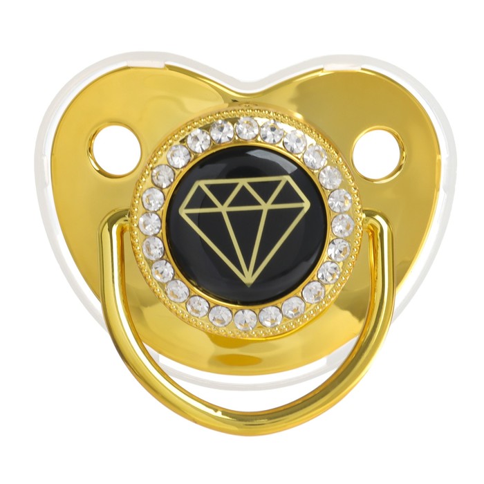 Соска - пустышка силиконовая ортодонтическая M&B «Бриллиант», от 12 мес., с колпачком, золотой/черный, стразы