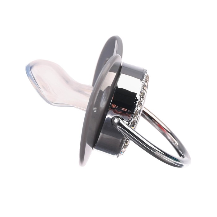 Соска - пустышка силиконовая ортодонтическая M&B «I LOVE DAD», от 6 мес., с колпачком, держатель - цепочка, серый/серебро, стразы — Характеристики