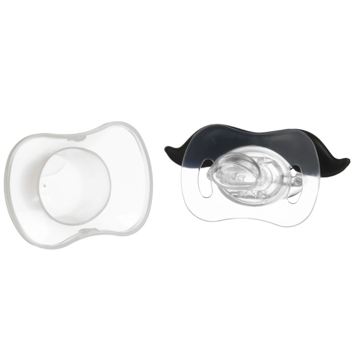 Соска пустышки силиконовая и имеет анатомическую форму диска, специальные вентиляционные отверстия на пустышке улучшают циркуляцию воздуха не раздражают кожу малыша и не оставляют следов и опрелостей. Создана для удовлетворения естественного сосательного рефлекса малышей. Пустышка анатомической формы имеет немного сплюснутый сосок, благодаря чему прилегает к языку.
