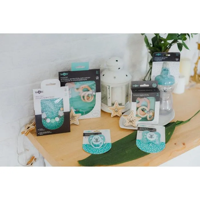Соска - пустышка силиконовая ортодонтическая M&B, от 0 мес., бирюзовый