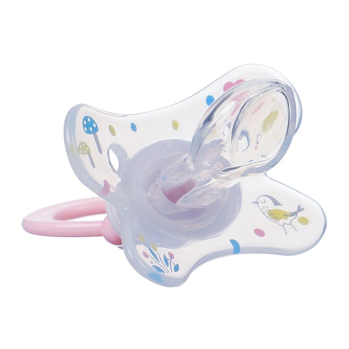 Соска-пустышка предназначена для детей с 12 мес. Форма нагубника с симметрично расположенными отверстиями обеспечивает свободную циркуляцию воздуха для предотвражения появления опрелостей.