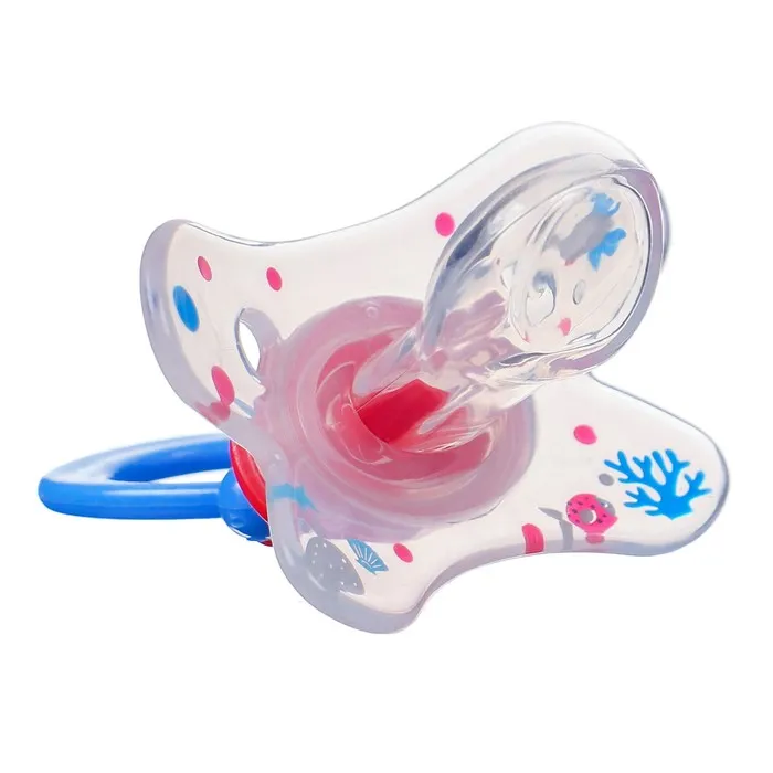 Соска-пустышка предназначена для детей с 12 мес. Форма нагубника с симметрично расположенными отверстиями обеспечивает свободную циркуляцию воздуха для предотвражения появления опрелостей.