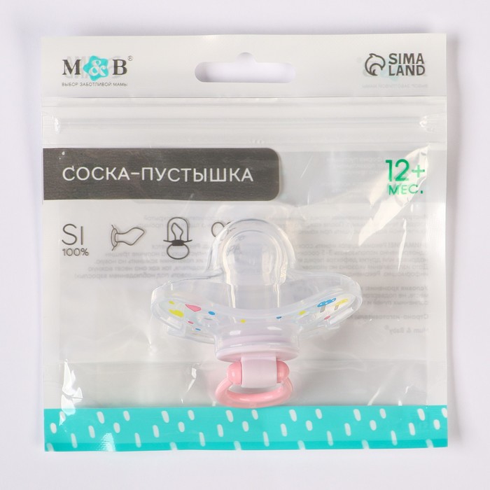 Соска - пустышка силиконовая ортодонтическая M&B «Зайка», от 12 мес., с колпачком, розовый — Характеристики