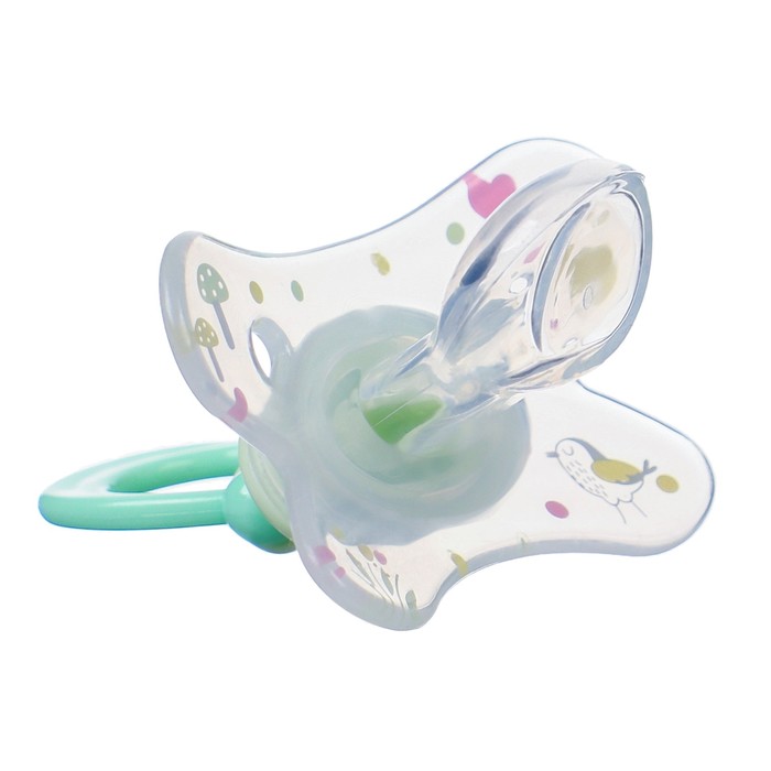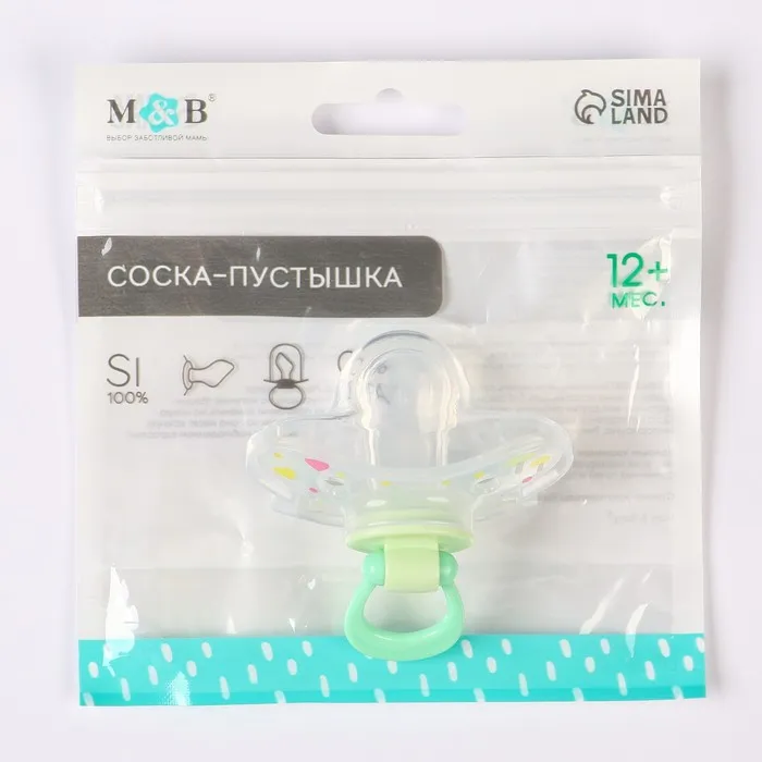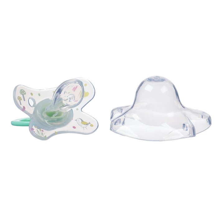 Соска - пустышка силиконовая ортодонтическая M&B «Зайка», от 12 мес., с колпачком, зеленый — Характеристики
