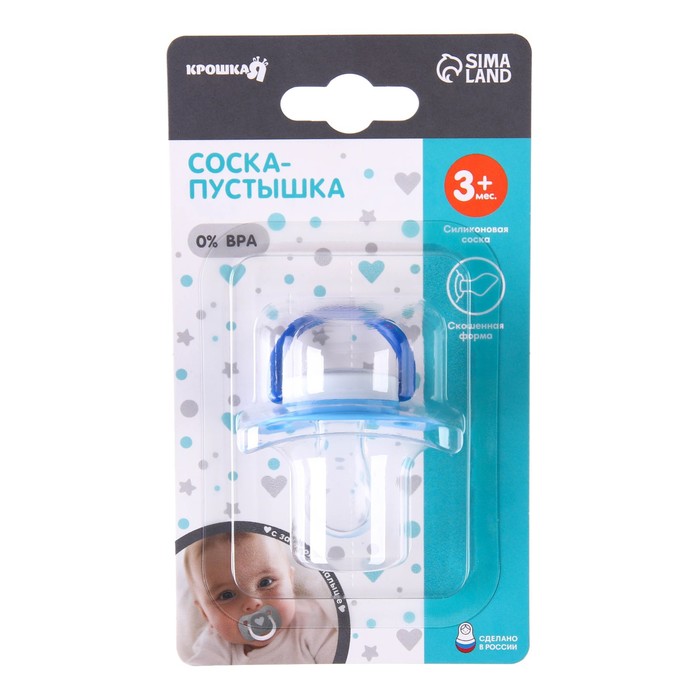 Соска пустышки силиконовая и имеет анатомическую форму диска, специальные вентиляционные отверстия на пустышке улучшают циркуляцию воздуха не раздражают кожу малыша и не оставляют следов и опрелостей. Создана для удовлетворения естественного сосательного рефлекса малышей. Пустышка анатомической формы имеет немного сплюснутый сосок, благодаря чему прилегает к языку.