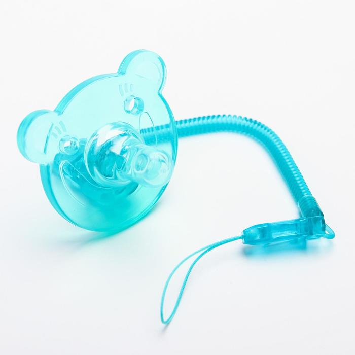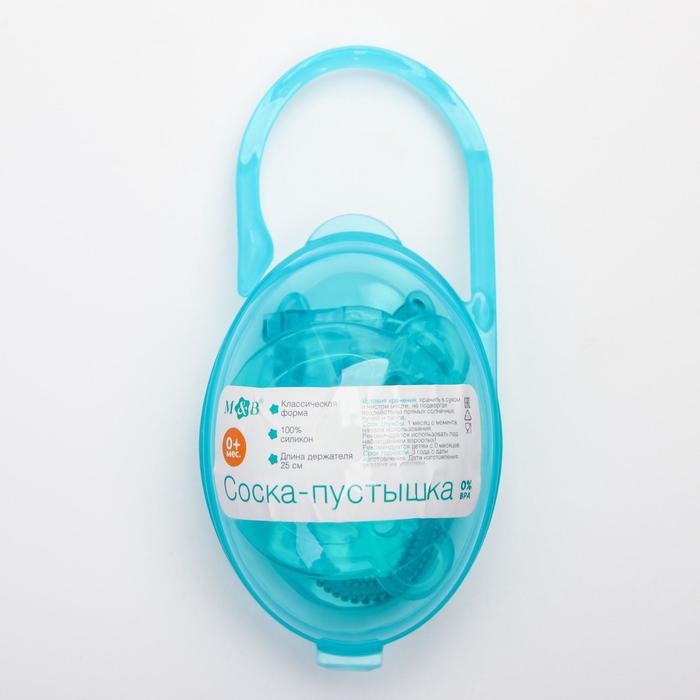 Соска - пустышка цельносиликоновая классическая M&B «Мишка», от 0 мес., с держателем, в контейнере, зеленый — Характеристики