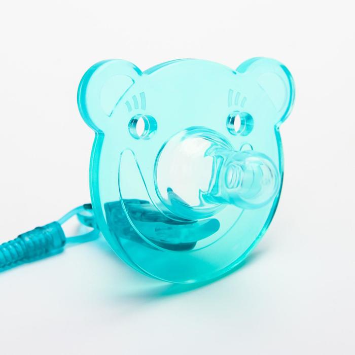 Соска - пустышка цельносиликоновая классическая M&B «Мишка», от 0 мес., с держателем, в контейнере, зеленый