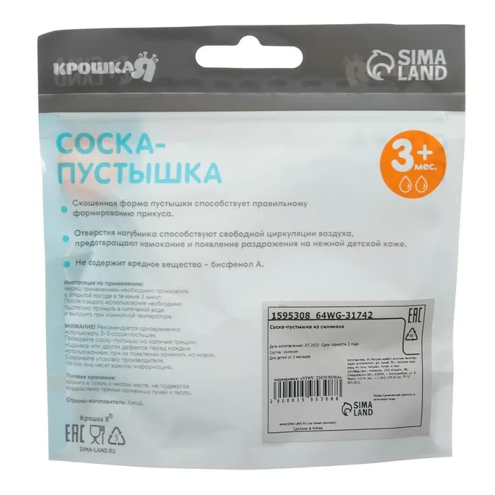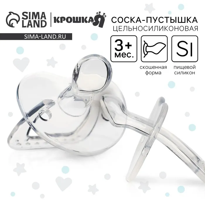 Соска - пустышка цельносиликоновая ортодонтическая Крошка Я, от 3 мес., прозрачный — Характеристики