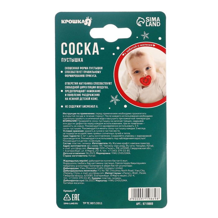 Соска - пустышка «Волшебство, красная клетка», ортодонтическая, силикон, от 6 мес., Крошка Я — Характеристики