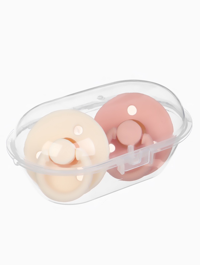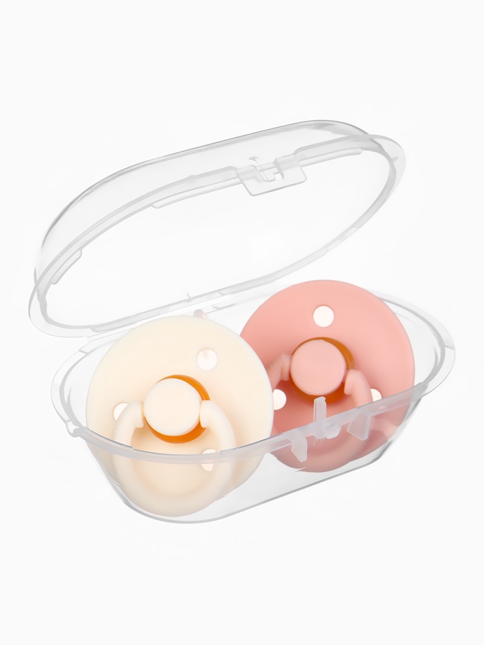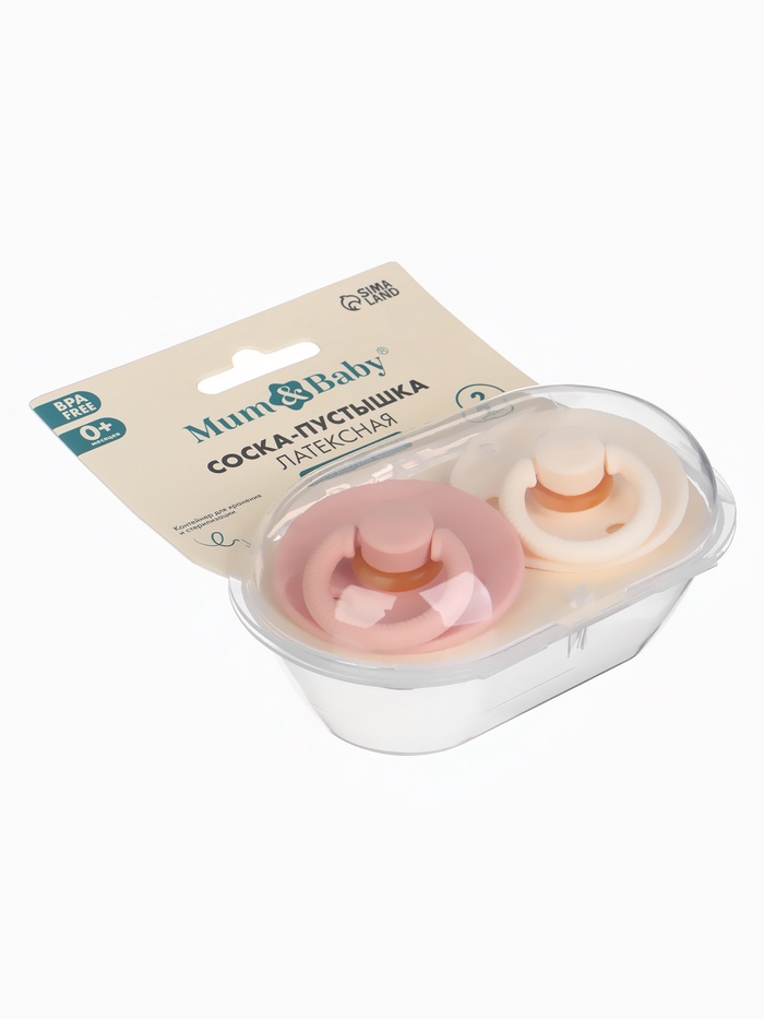 Соски-пустышки, от 0 мес., латекс, классические, в контейнере, набор из 2 шт., персиковый/айвори, M&B — Характеристики