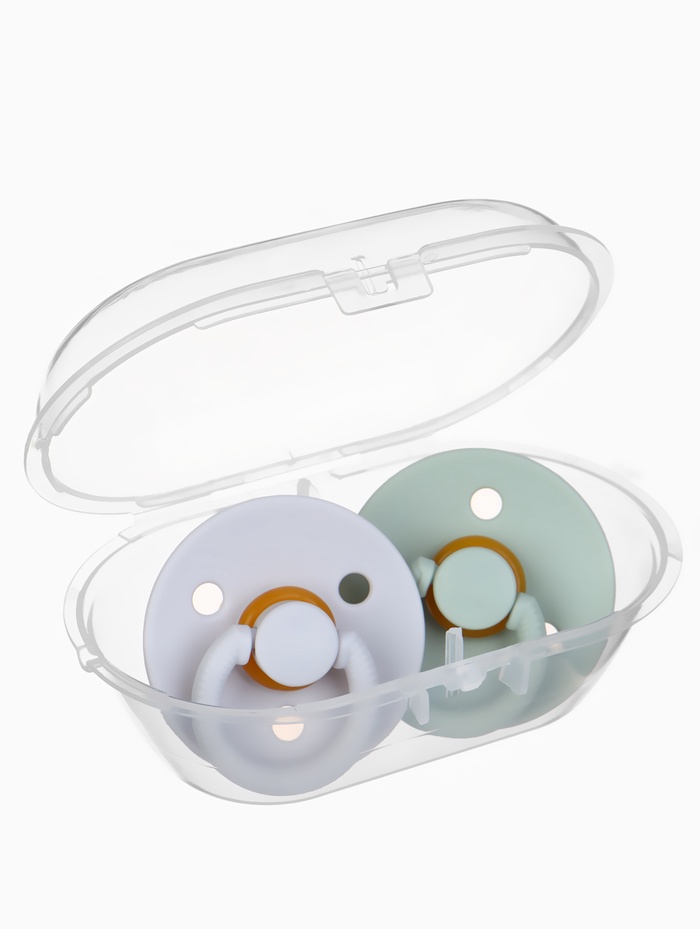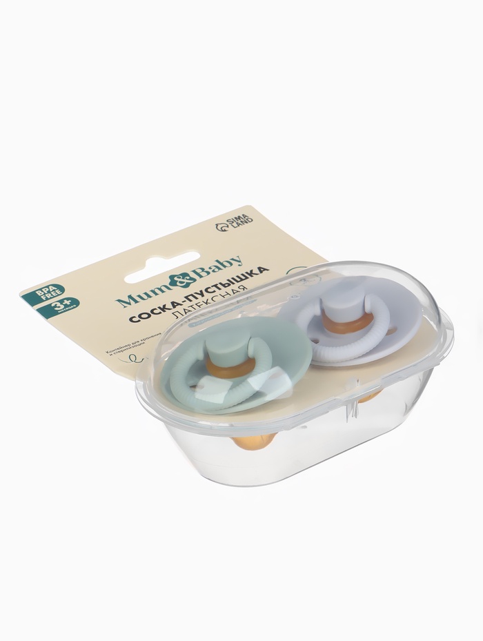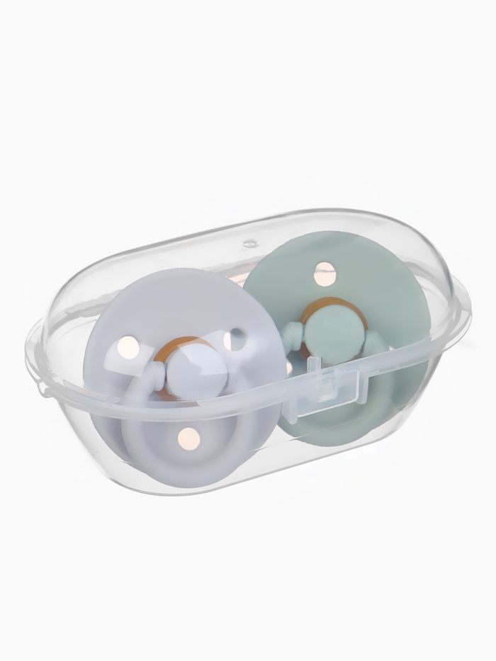 Соски-пустышки, от 3 мес., латекс, классические, в контейнере, набор из 2 шт., зелёный/серый, M&B — Характеристики