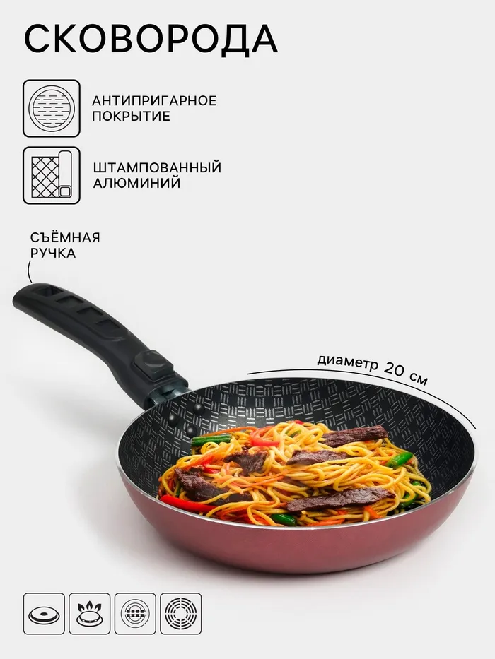 Сотейник, d=26 см, h=6 см, толщина 1 мм, 201 сталь, цвет золотой — Характеристики