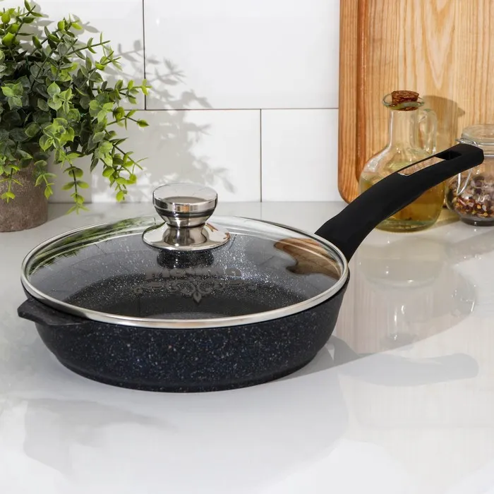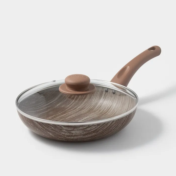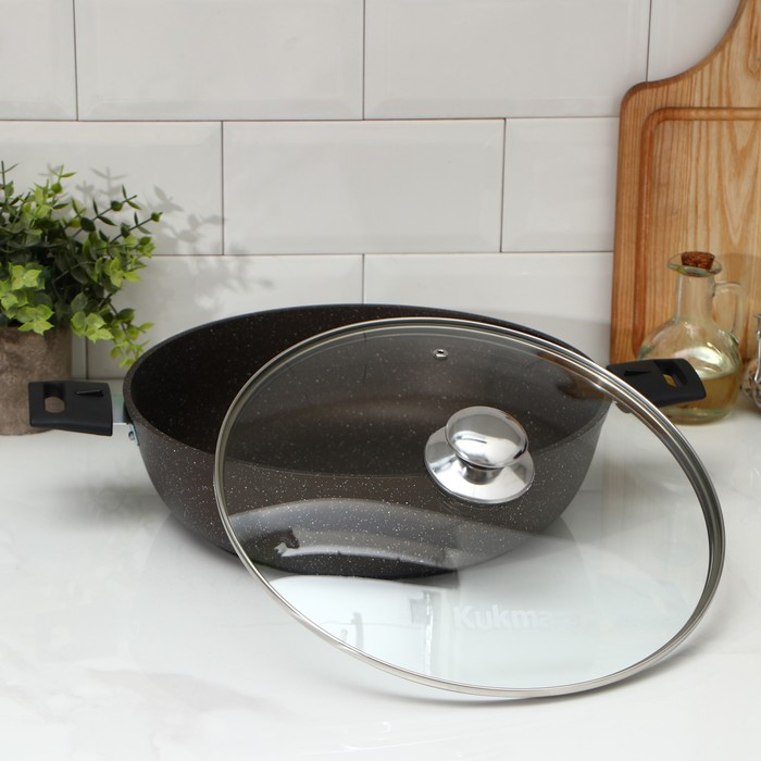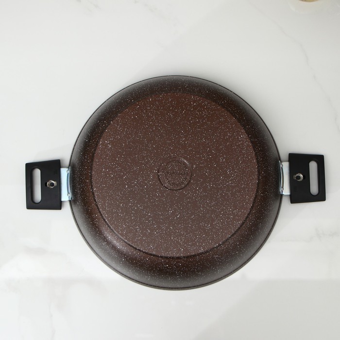 Сотейник, d=30 см, h=8.5 см, съёмные ручки, стеклянная крышка, антипригарное покрытие, коричневый — Характеристики