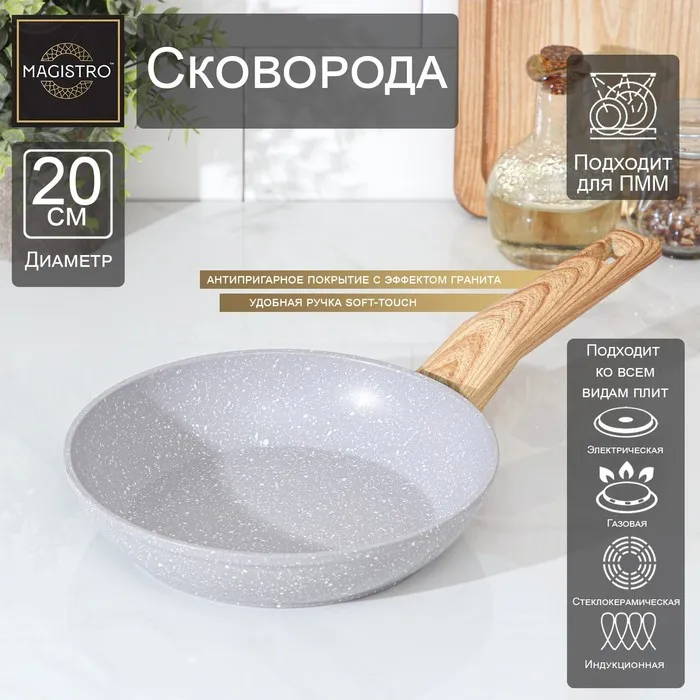 - Высокопрочное антипригарное мраморное покрытие на водной основе усилено сверхтвёрдыми частицами минералов.