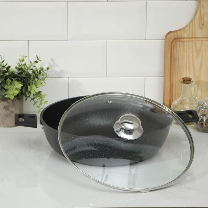 Сотейник, d=30 см, съёмные ручки, стеклянная крышка, антипригарное покрытие, цвет тёмный мрамор — Характеристики