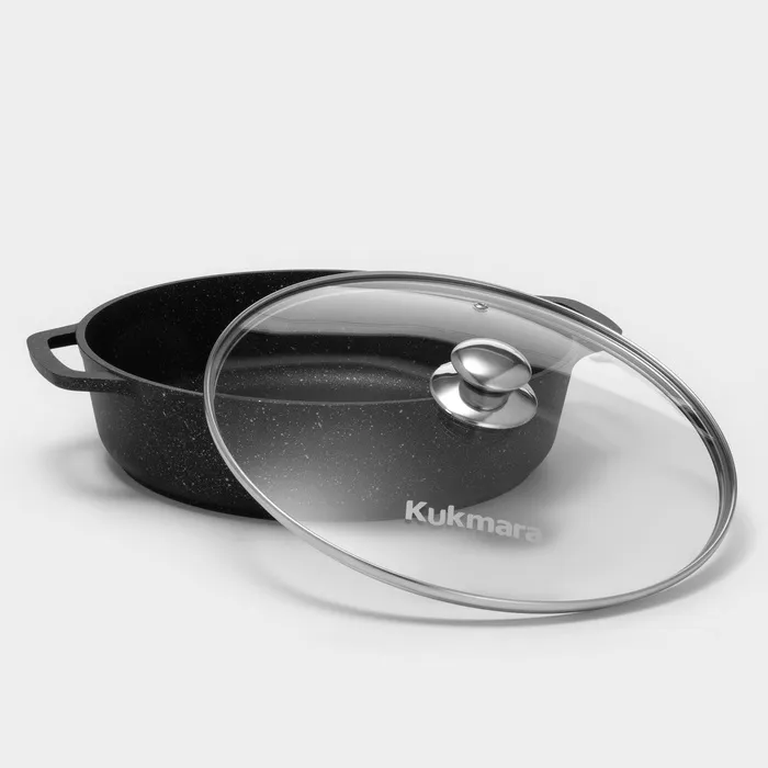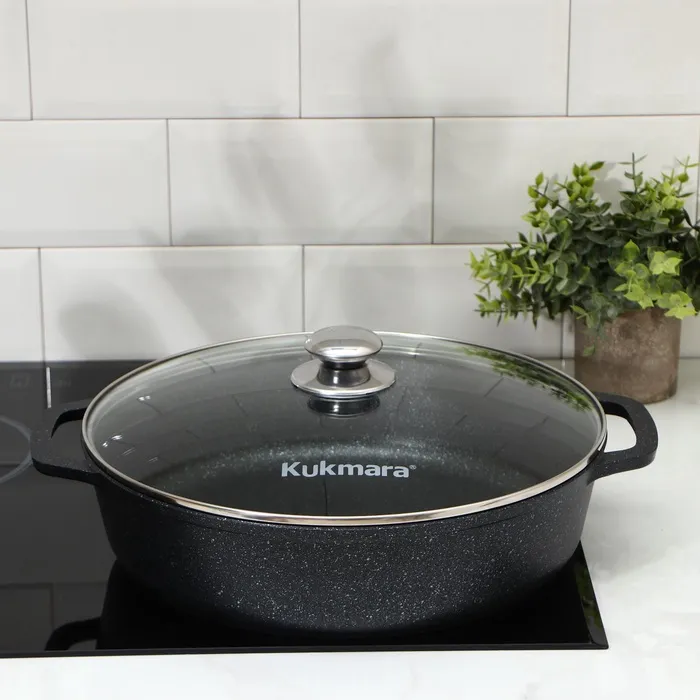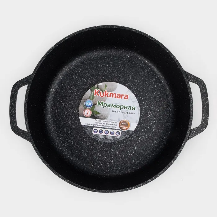 Сотейник, d=32 см, стеклянная крышка, литые ручки, антипригарное покрытие, цвет тёмный мрамор — Характеристики