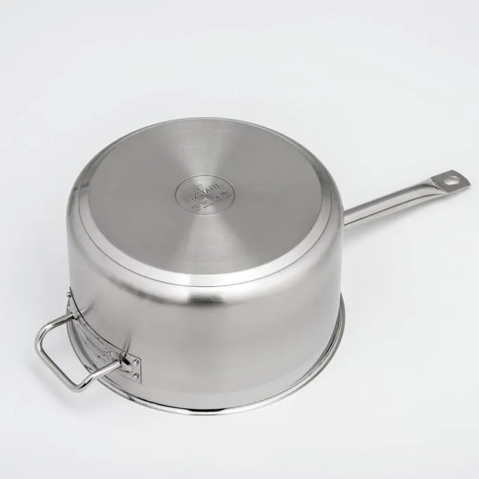 Сотейник Luxstahl изготовлен из высококачественной нержавеющей стали 18/10 и имеет трехслойное капсульное дно толщиной 4,2 мм, которое обеспечивает быстрый и равномерный подогрев пищи и исключает ее пригорание. Посуда из нержавеющей стали экологична, гигиенична и проста в эксплуатации. Она устойчива к воздействию кислот и щелочей, в том числе при высоких температурах, устойчива к деформации. В ней можно хранить приготовленное блюдо в холодильнике.
