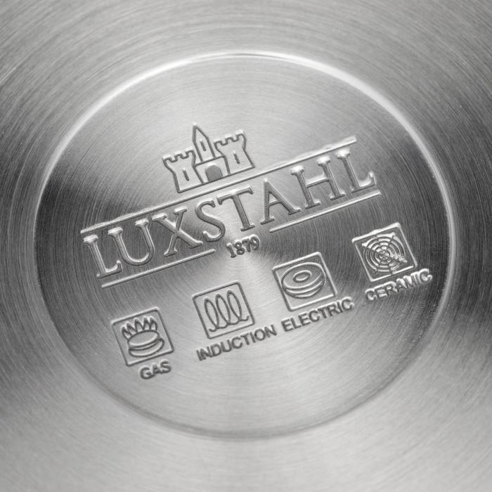 Сотейник Luxstahl изготовлен из высококачественной нержавеющей стали 18/10 и имеет трехслойное капсульное дно толщиной 4,2 мм, которое обеспечивает быстрый и равномерный подогрев пищи и исключает ее пригорание. Посуда из нержавеющей стали экологична, гигиенична и проста в эксплуатации. Она устойчива к воздействию кислот и щелочей, в том числе при высоких температурах, устойчива к деформации. В ней можно хранить приготовленное блюдо в холодильнике.