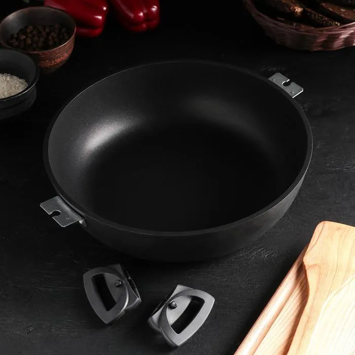 Сотейник «Традиция», 4 л, d=30 см, стеклянная крышка, съёмные ручки, антипригарное покрытие, цвет чёрный — Характеристики