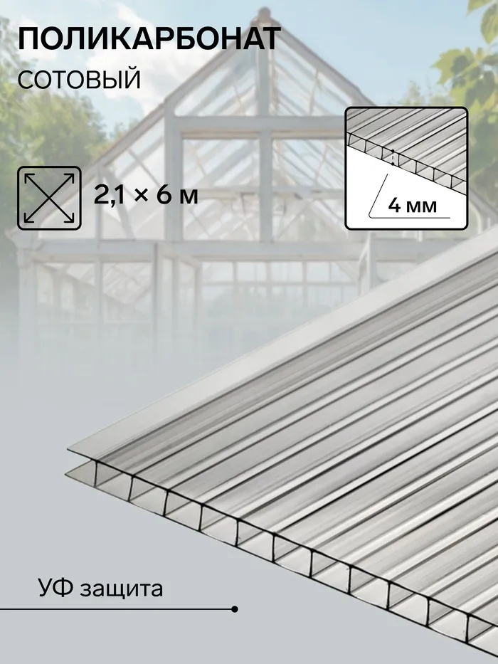 Сотовый поликарбонат 4 мм, 2.1×6 м, УФ, прозрачный — Характеристики
