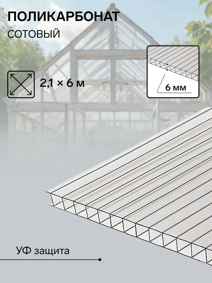 Сотовый поликарбонат 6 мм, 2.1×6 м, УФ, прозрачный — Характеристики