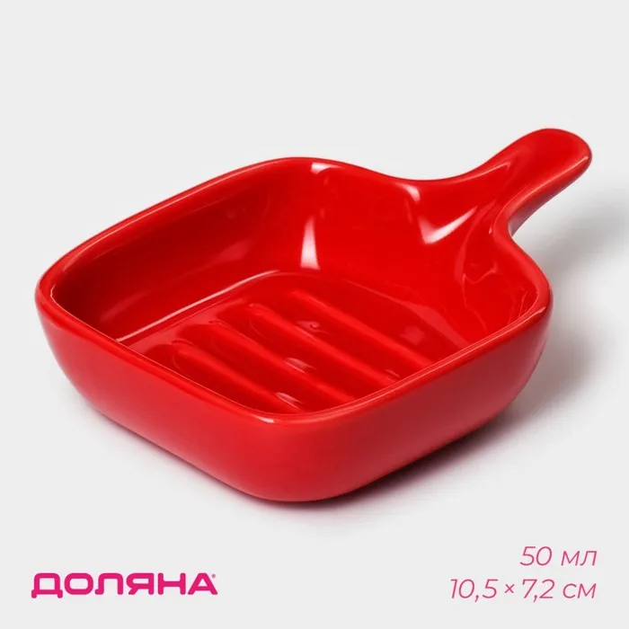 Соусник Доляна «Сковорода», 50 мл, 10.5×7.2 см, с ручкой, керамика, красный — Характеристики