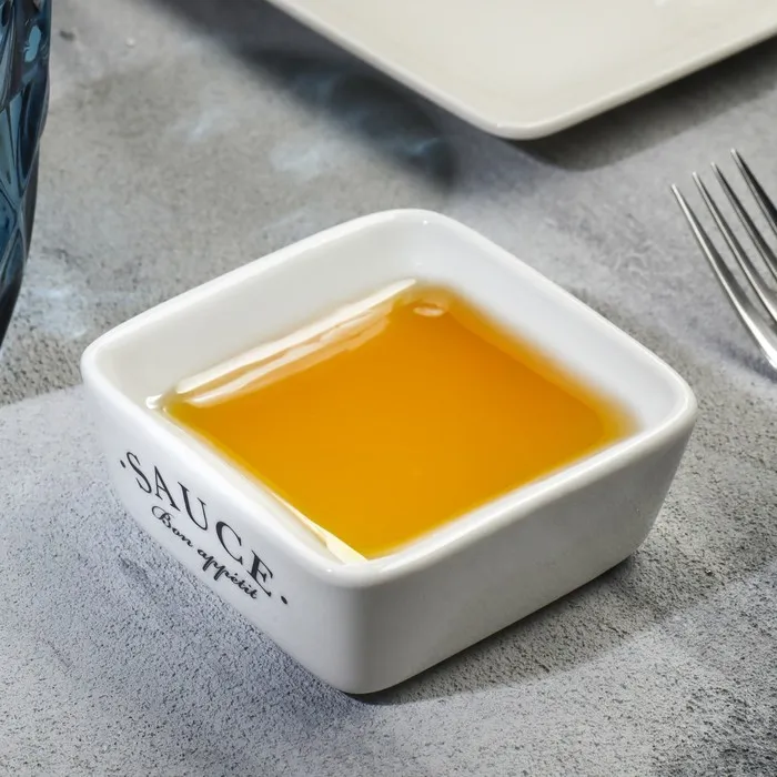 Квадратный соусник размером 8.5 х 8.5 х 3.5 см станет отличным дополнением на столе. Размер соусника позволяет вместить достаточное количество как жидкого, так и густого соуса. Также данный соусник подходит для варенья, джема, мёда и многого другого.