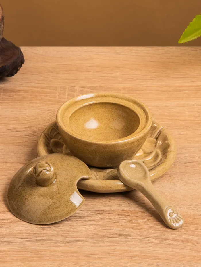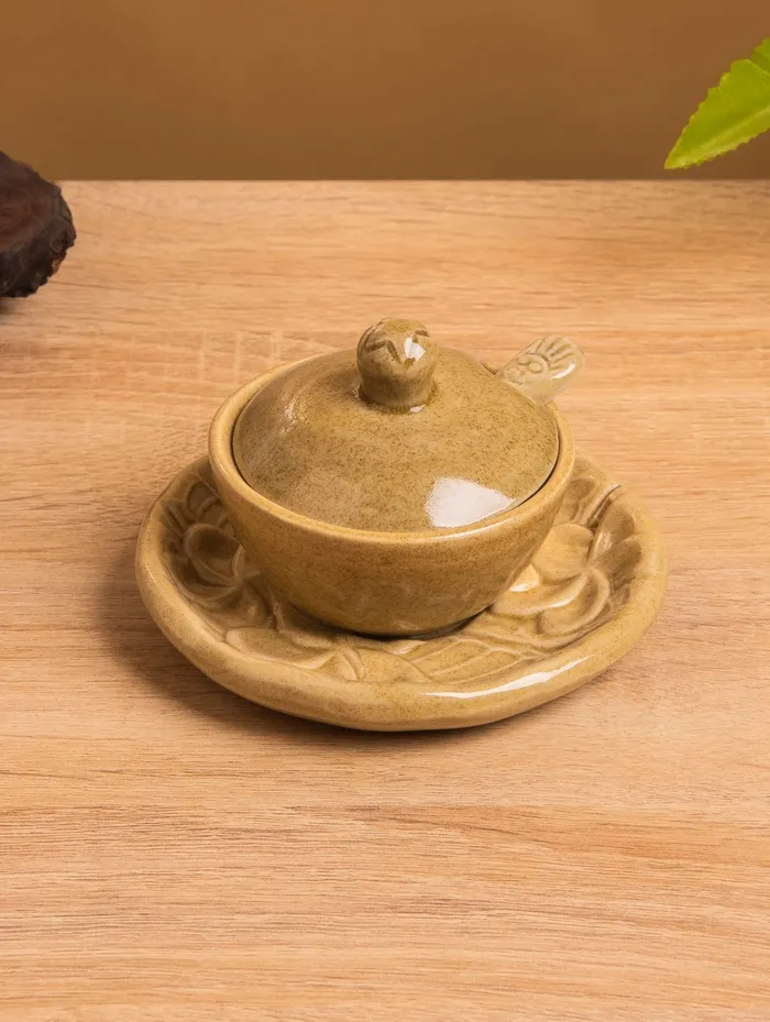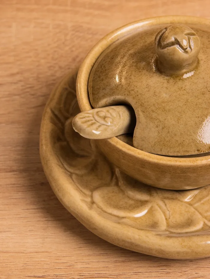 Соусник с крышкой на подставке "Флора" керамика, цв. бежевый, 11х11х7 см — Характеристики