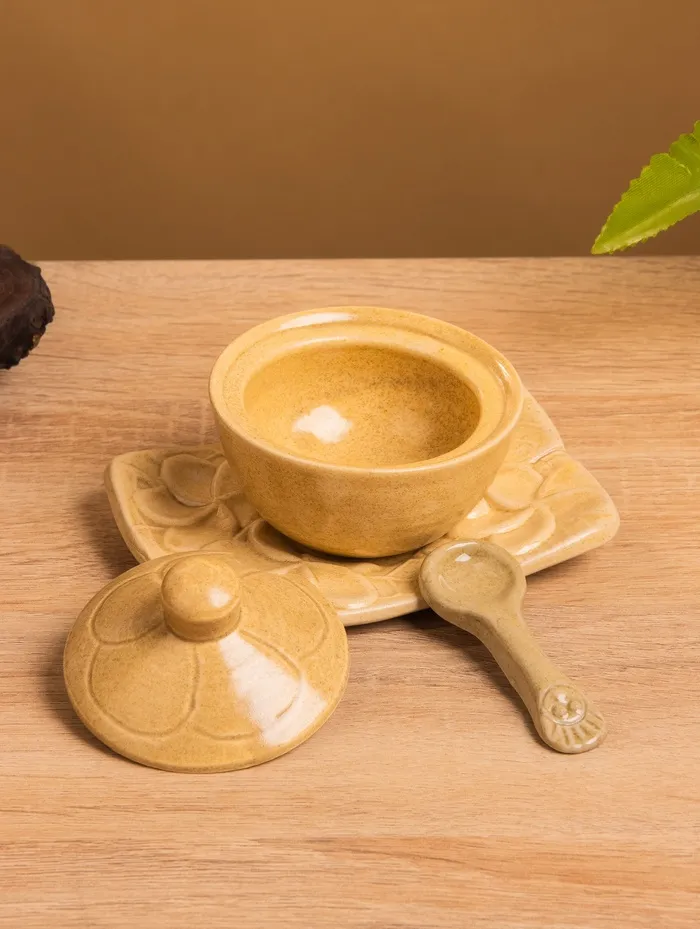 Соусник с крышкой на подставке «Классика», 11×8×7 см, керамика, бежевый — Характеристики
