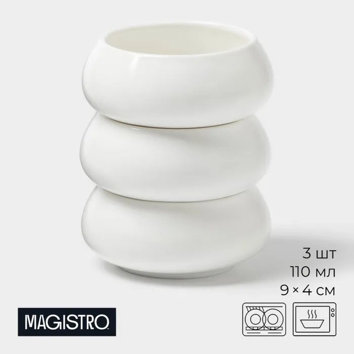 Соусники Magistro OliveQueen, 110 мл, 9×4 см, набор 3 шт., фарфор, белые — Характеристики