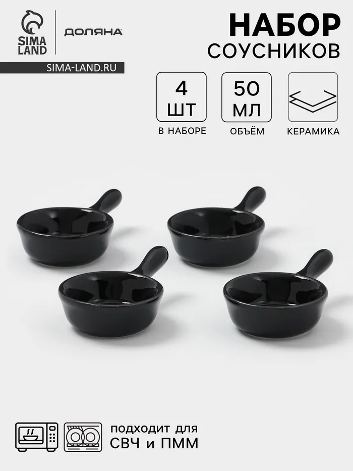Соусники с ручкой Доляна «Классика», набор 4 шт., 50 мл, керамика, чёрный — Характеристики