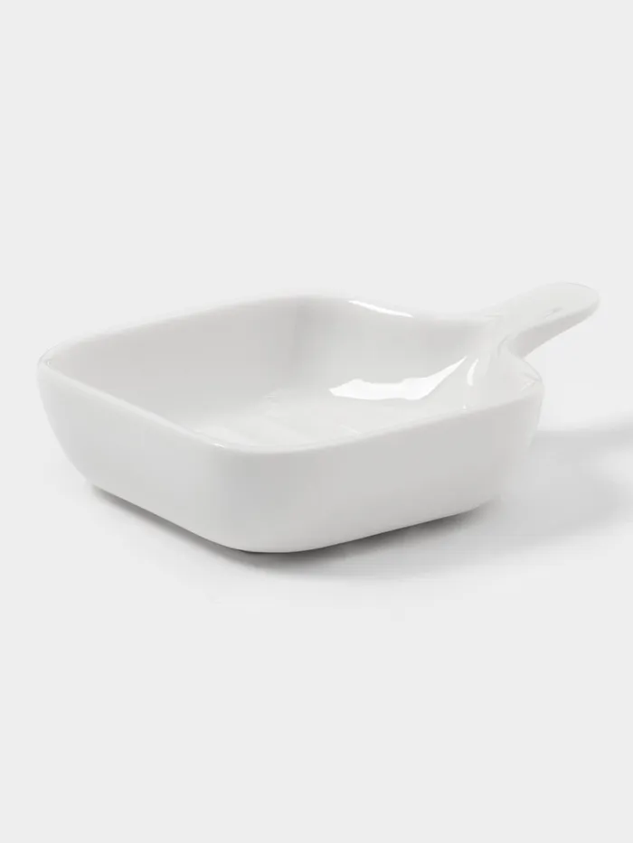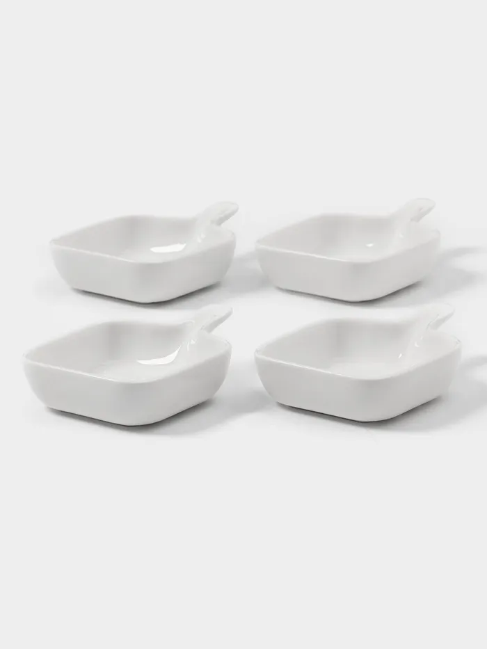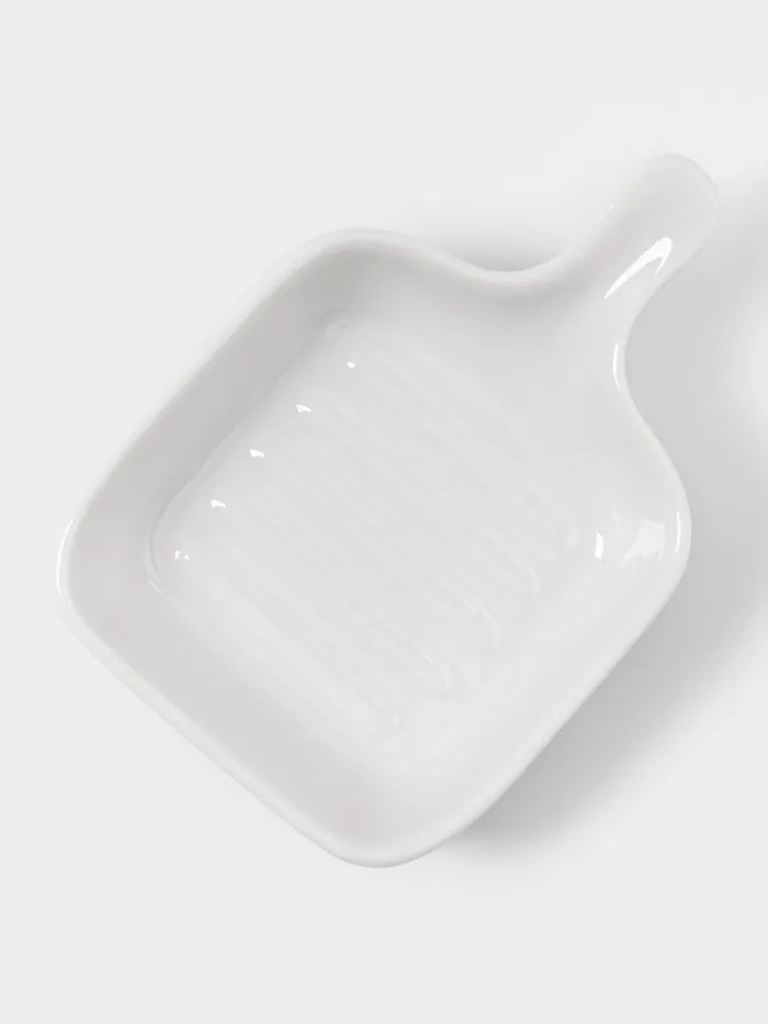 Этот набор керамических соусников в форме миниатюрных сковородок сочетает игривый дизайн с практичной функциональностью. Четыре одинаковые ёмкости объёмом 50 мл подходят для подачи соусов, специй, топпингов или десертных добавок. Классическая белая гамма создаёт нейтральный фон, который подчёркивает цвет содержимого, а форма сковородки с ручкой добавляет сервировке элемент кулинарной метафоры.