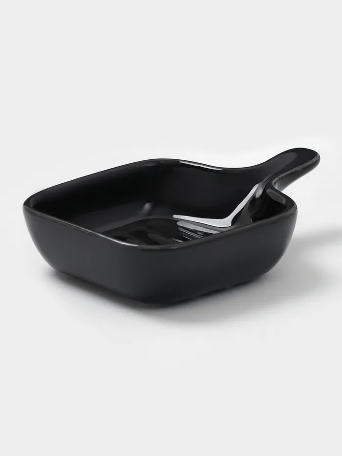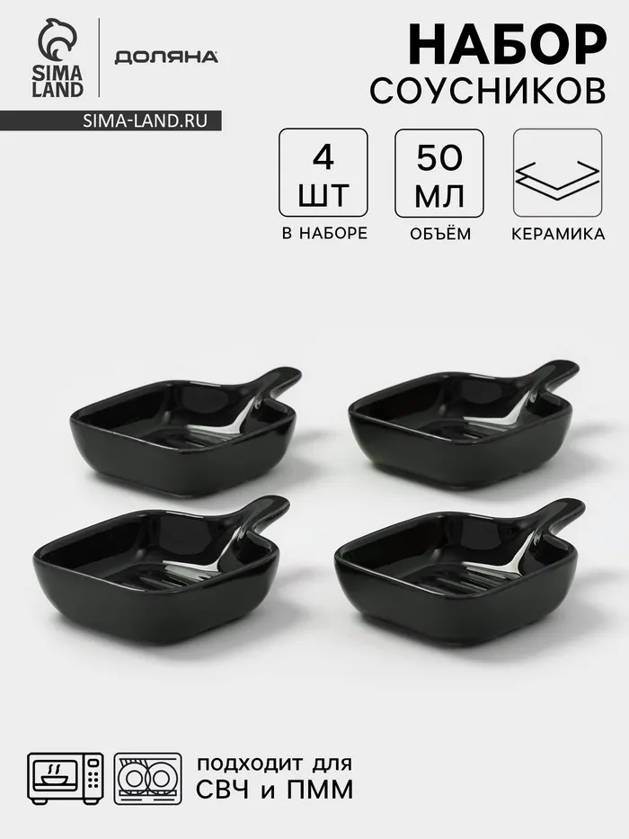 Набор чёрных керамических соусников с удобными ручками — стильное и практичное решение для сервировки. Четыре миниатюрные ёмкости в форме сковородок идеально подходят для подачи соусов, специй или оливкового масла. Их лаконичный дизайн впишется как в современную, так и в классическую кухонную эстетику.