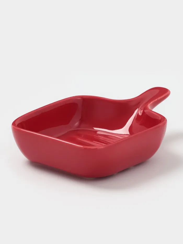 Набор ярких керамических соусников в насыщенном красном цвете добавит акцент на любом столе. Четыре компактные емкости с удобными ручками созданы для подачи соусов, оливкового масла или меда. Их лаконичная форма вдохновлена классической сковородкой - практично и узнаваемо.