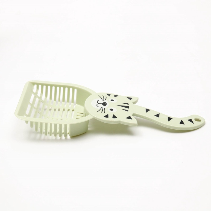 Совок для туалета «Довольный кот», 28×12.5 см, пластик, зелёный