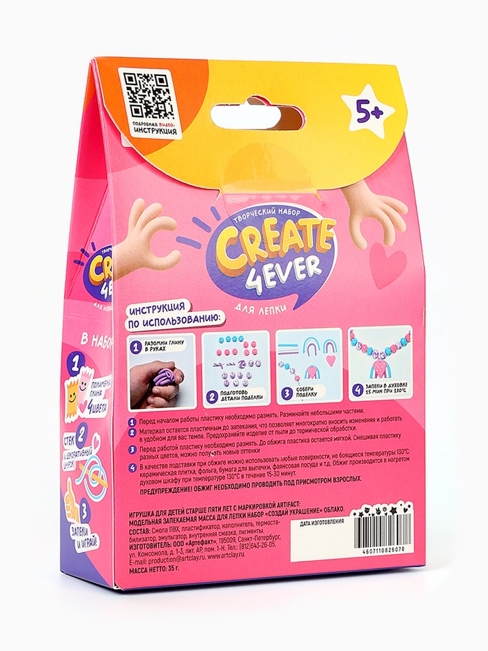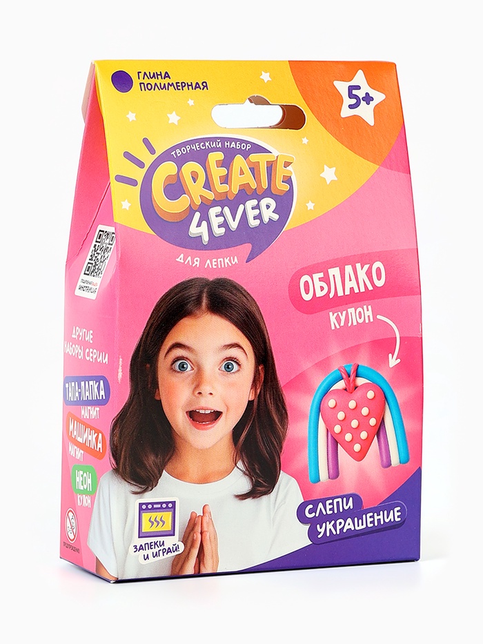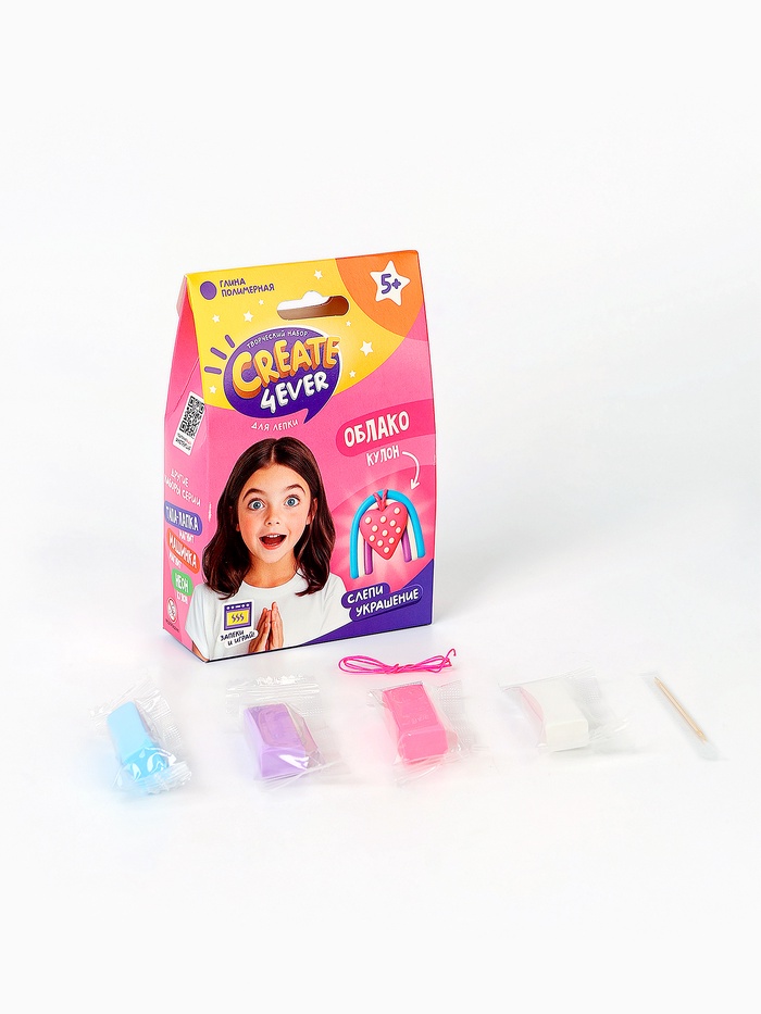 В наборе: полимерная глина - 4 цвета, стек, декоративный шнур.