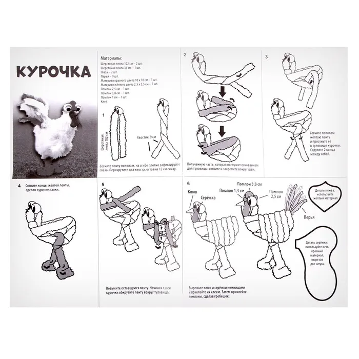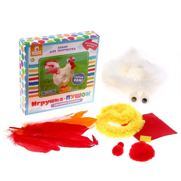 Создание игрушки из меховых палочек и раскраска «Веселая курочка», набор для творчества — Характеристики