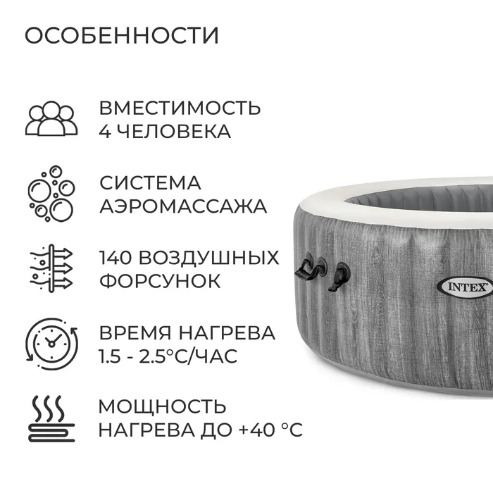 SPA бассейн GREYWOODDELUXE, 196 х 71 см, 220-240V, от 6 лет, 28440 INTEX — Характеристики