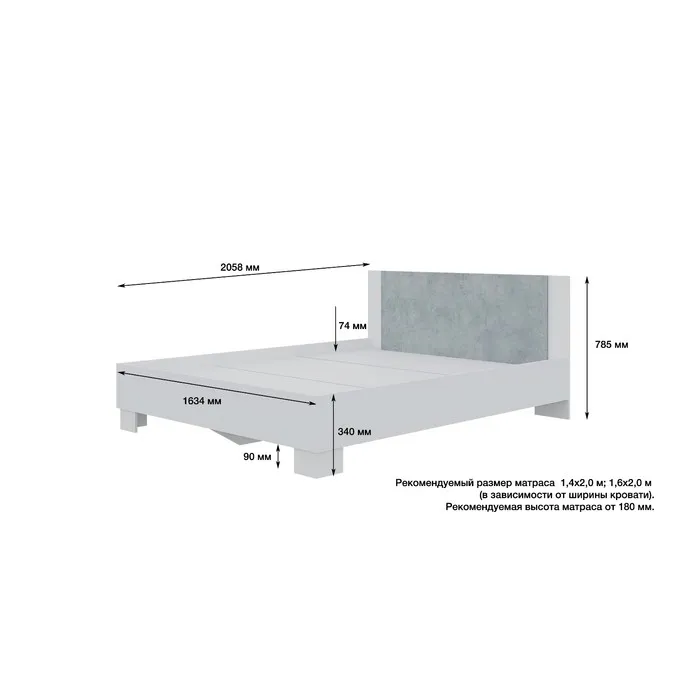 - Кровать двуспальная с основанием настил. Размеры (ШхГхВ): 1634 х 2058 х 785.