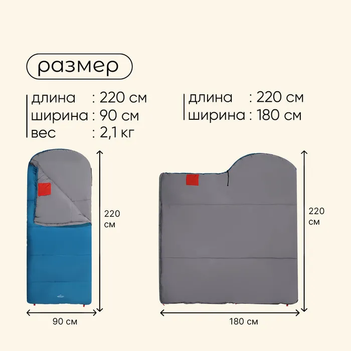 Четырёхслойный спальник-одеяло подойдёт для отдыха на природе в демисезонный период. Изделие оснащено внутренним карманом, подголовником и петлями для просушки.