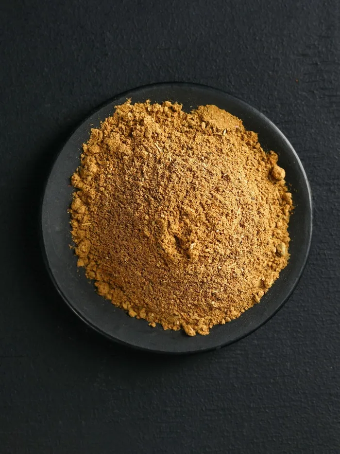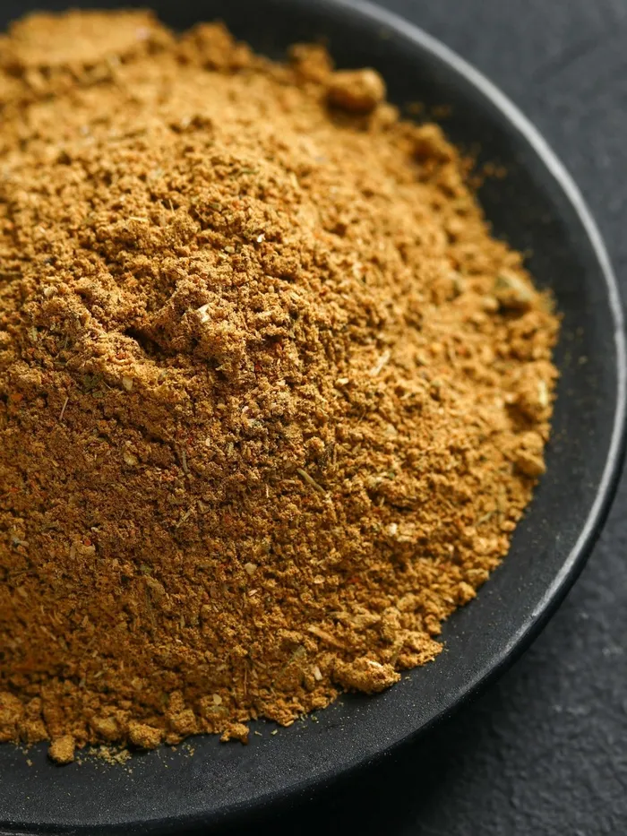 Состав: перец красный молотый, кориандр молотый, перец чёрный молотый, имбирь молотый, лавровый лист молотый, куркума молотая, базилик сушёный, петрушка (зелень), горчичный порошок, сельдерей (зелень молотая), чеснок сушёный, базилик молотый, паприка красная молотая.