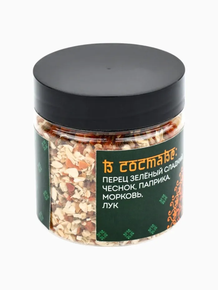 Состав: чесноке, перец красный сладкий (паприка), перец зелёный сладкий (паприка), лук, морковь.