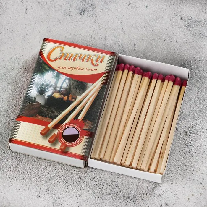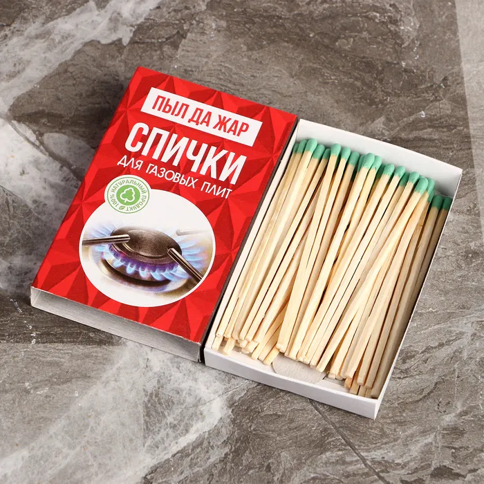 Спички для газовых плит отличаются от бытовых своей длиной и толщиной, за счет чего обеспечивают удобный и безопасный розжиг.