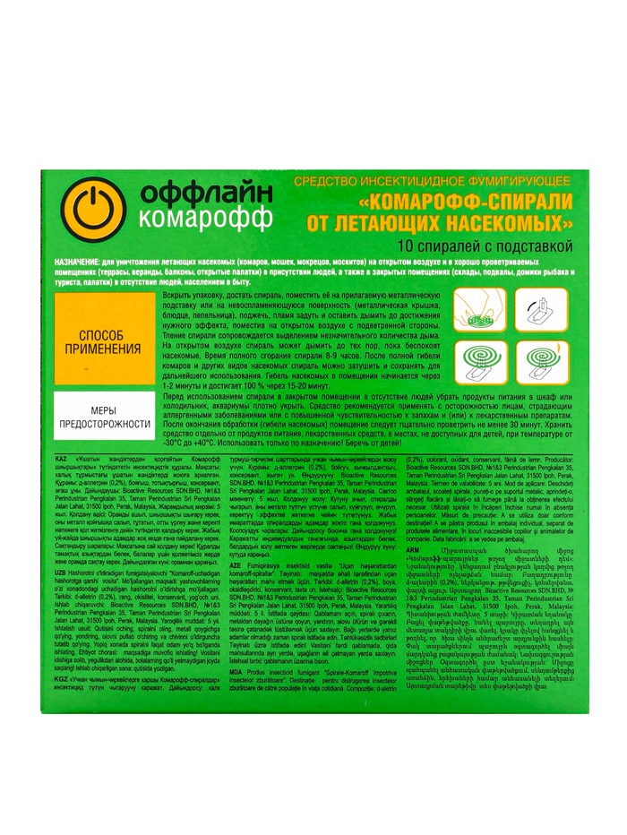 Летний сезон – это время отдыха на природе, пикников и прогулок на свежем воздухе. Однако, вместе с этим приходит и необходимость бороться с насекомыми, которые могут испортить любой отдых. Комары и мошки – самые распространенные представители назойливых насекомых. Для их борьбы было создано множество средств, но одним из самых эффективных являются спирали от комаров и мошек "Комарикофф".Спирали "Комарикофф" – это средство, которое позволяет защититься от насекомых на длительный период времени. Они изготавливаются из натуральных компонентов, таких как древесный уголь, порошок пиретриновых цветов и другие растительные экстракты. Благодаря этому, спирали "Комарикофф" не только эффективно борются с комарами и мошками, но и безопасны для здоровья человека.Одной из главных преимуществ спиралей "Комарикофф" является их длительное действие. Они способны защитить от насекомых на протяжении 3,5 часов, что позволяет проводить время на природе без необходимости постоянно наносить новые средства от комаров и мошек. Кроме того, спирали "Комарикофф" имеют приятный аромат, который не вызывает дискомфорта у людей.Достаньте средство из упаковки и осторожно разъедините, отогните стойку на металлической подставке, которая идет в подарок, а затем закрепите. Для этого на спирали есть специальная прорезь, после поджигайте конец и задуйте огонь, поместите на открытом воздухе с подветренной стороны. Действие средства начнется через 10 минут. В закрытых помещениях использовать в отсутствии людей. Полная гибель происходит через 10-20 минут. После помещение проветрить. Заказывайте средства от кровососущих «Оффлайн комарофф» и получите подставку-держатель.Они изготавливаются из натуральных компонентов, таких как древесный уголь, порошок пиретриновых цветов и другие растительные экстракты.