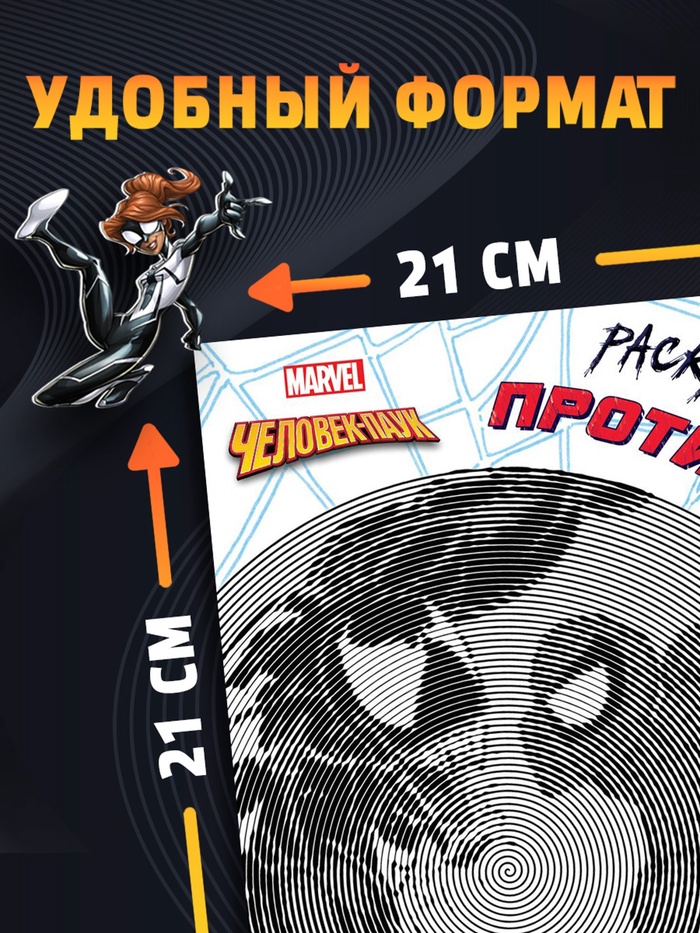• 28 страниц с детализированными узорами и изображениями Человека-паука.