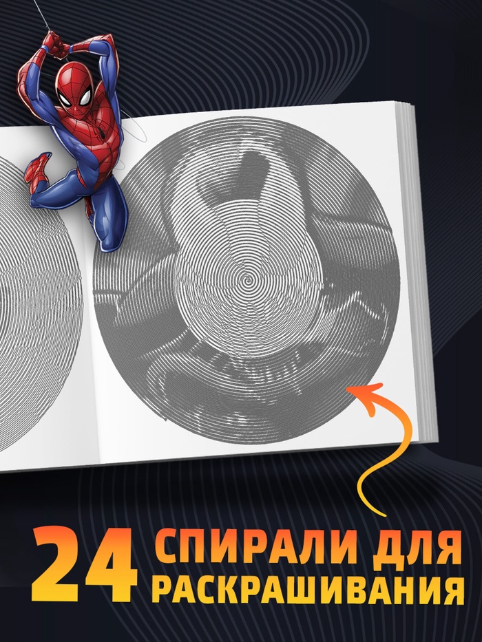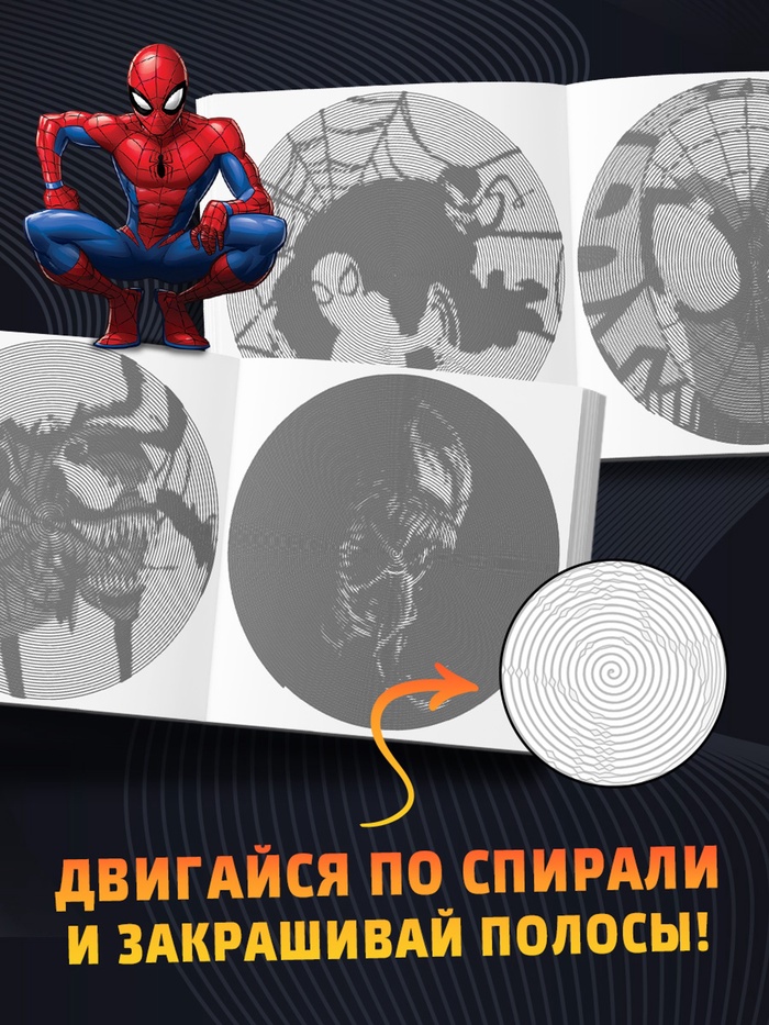Спиральная раскраска - антистресс, 21×21 см, 28 стр., Человек - паук