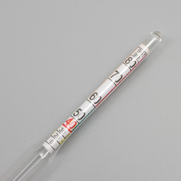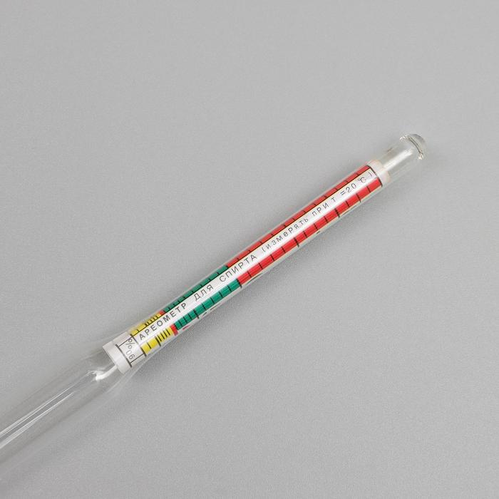 Граница погружения на мерной шкале будет являться индикатором крепости напитка. Диапазон значений величины: от 0 до 96 %.