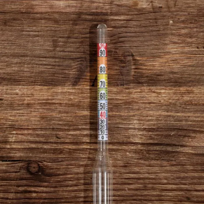 Опуститеспиртомер в сусло и дождитесь момента пока он полностью не остановится. Остановившись в ёмкости, запишите показания спиртомера;